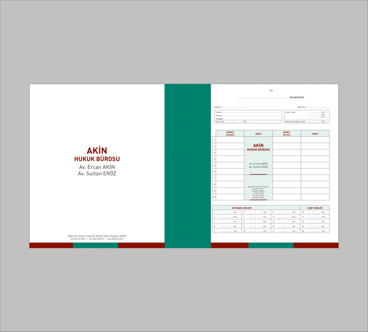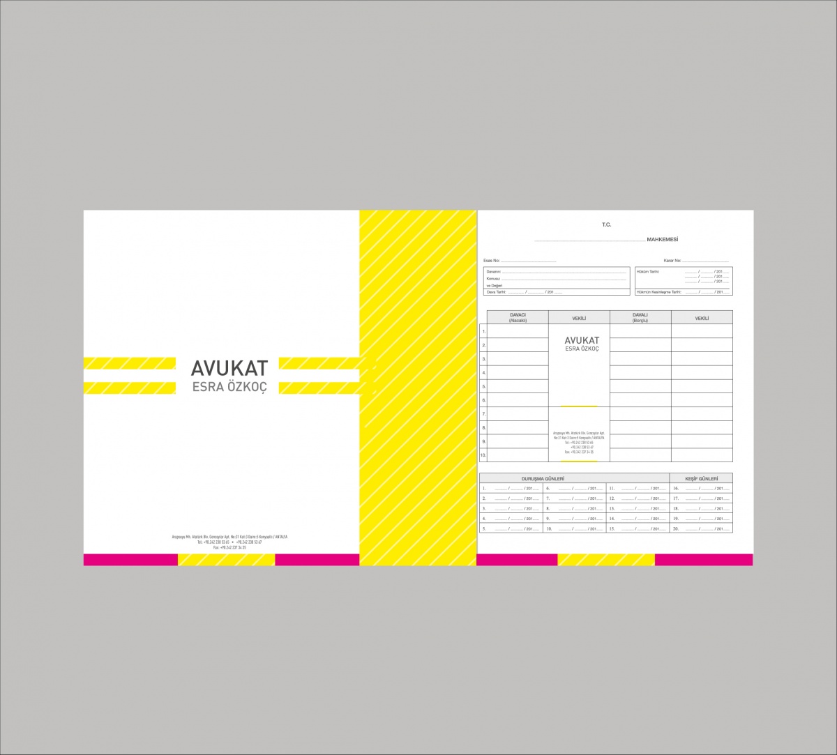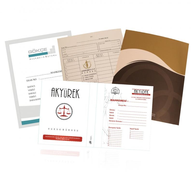 Avukatların ihtiyaç duydukları, dava ile ilgili bilgilerin olduğu dosyadır. Özel tasarımlar ile avukat dosyalarınız kullanım açısından kolaylık sağlarken kurumsal kimliğinize de değer katacaktır.