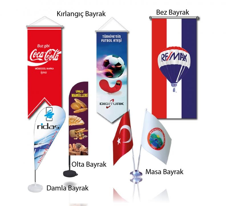 Flag), Flama, Gönder Bayrağı, Özel Ebatlarda Reklam Bayrağı, Masa Bayrağı, Takdim
