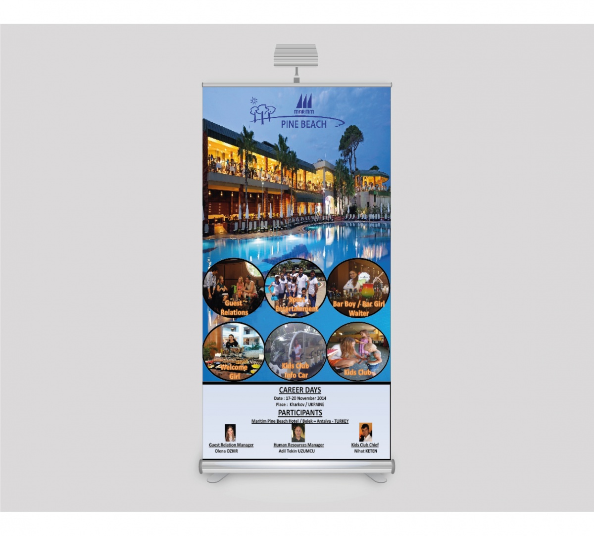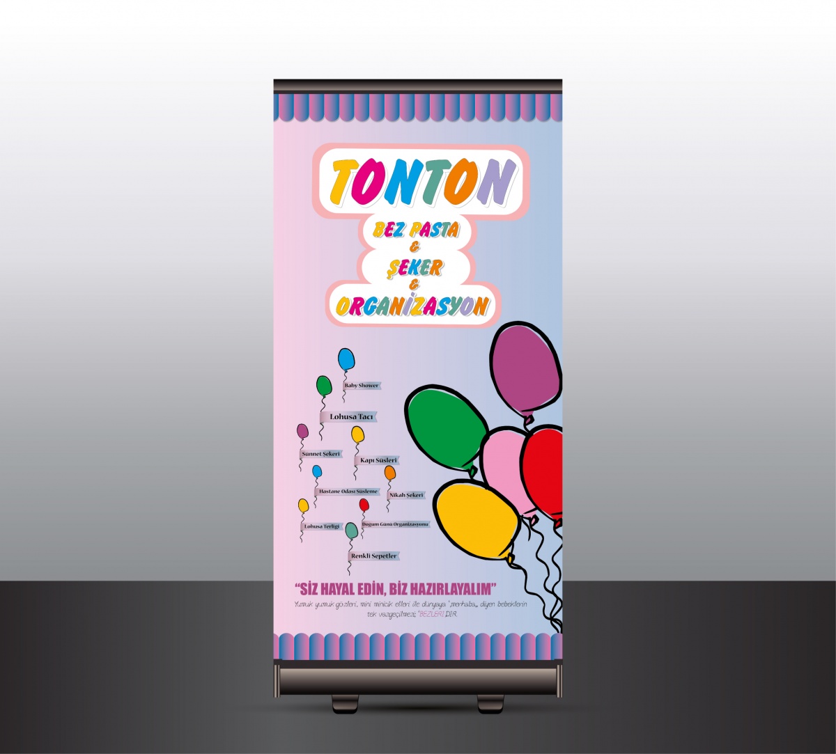 malzemelerinden oluşan Roll Up Banner, taşıması kolay, çok fazla yer kaplamayan
