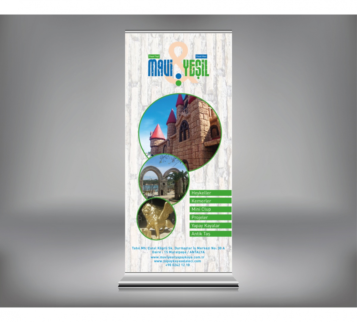 malzemelerinden oluşan Roll Up Banner, taşıması kolay, çok fazla yer kaplamayan